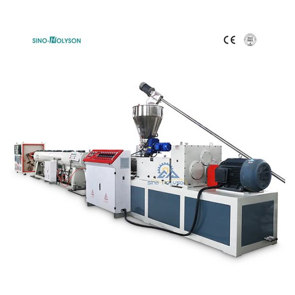 This PVC Pipe Extrusion Machine is a new product of our company, which is designed from pipe diameter from 75-160mm. The whole plant includes a twin screw extruder, mould, cooling water tank, tractor, cutter, and pipe stracker, also auxilary machines will be needed, like PVC Mixer, or Printer, Crusher, etc. Sino-Holyson Machine supplies not only the machines, but also the most important is we supply solutions, which will includes workshop arranging, construction, material preparing, formula testing, working staff training, etc. Choose a reliable supplier is the first key step to succuess.